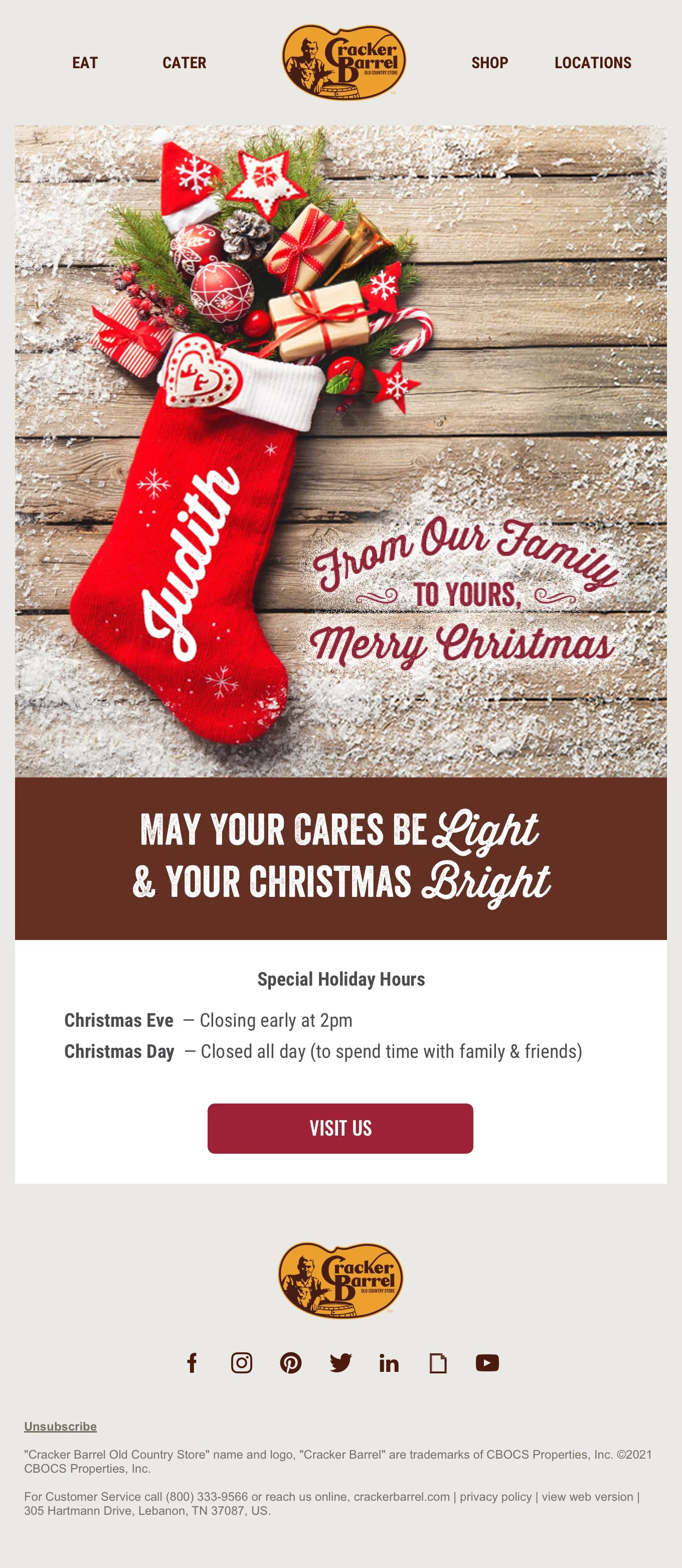 CRACKER BARREL CHRISTMAS CARD EMAIL