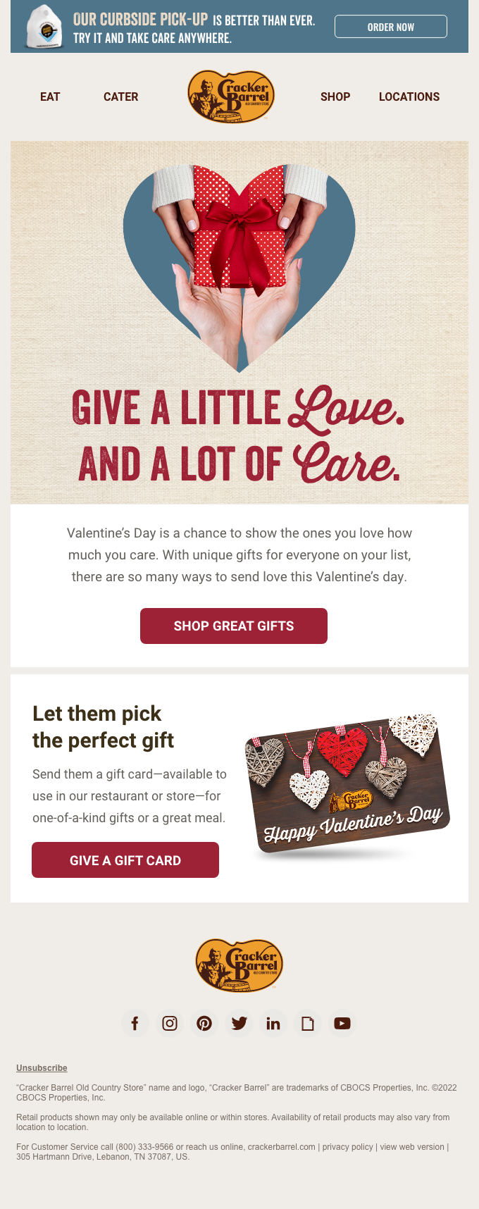 CRACKER BARREL VALENTINE’S DAY EMAIL