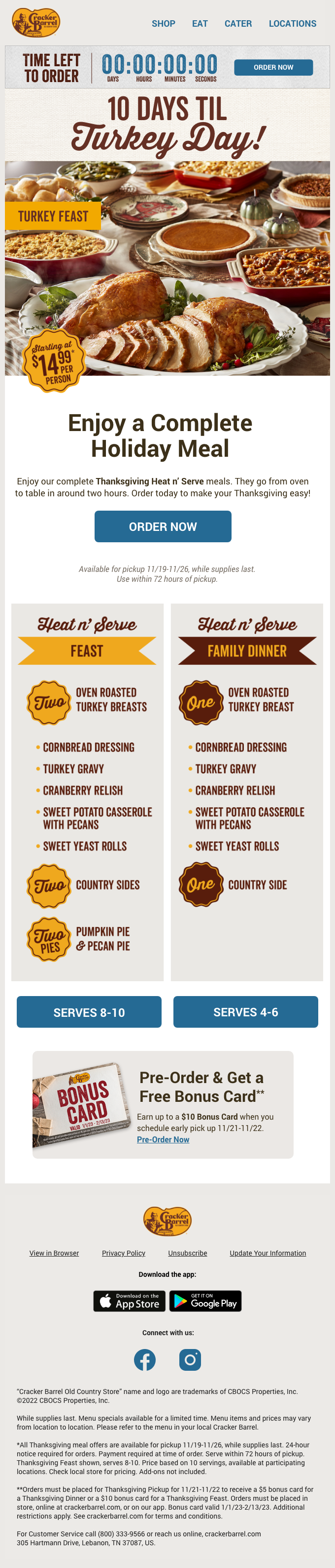 Cracker barrel Thanksgiving heat n’ serve campaign